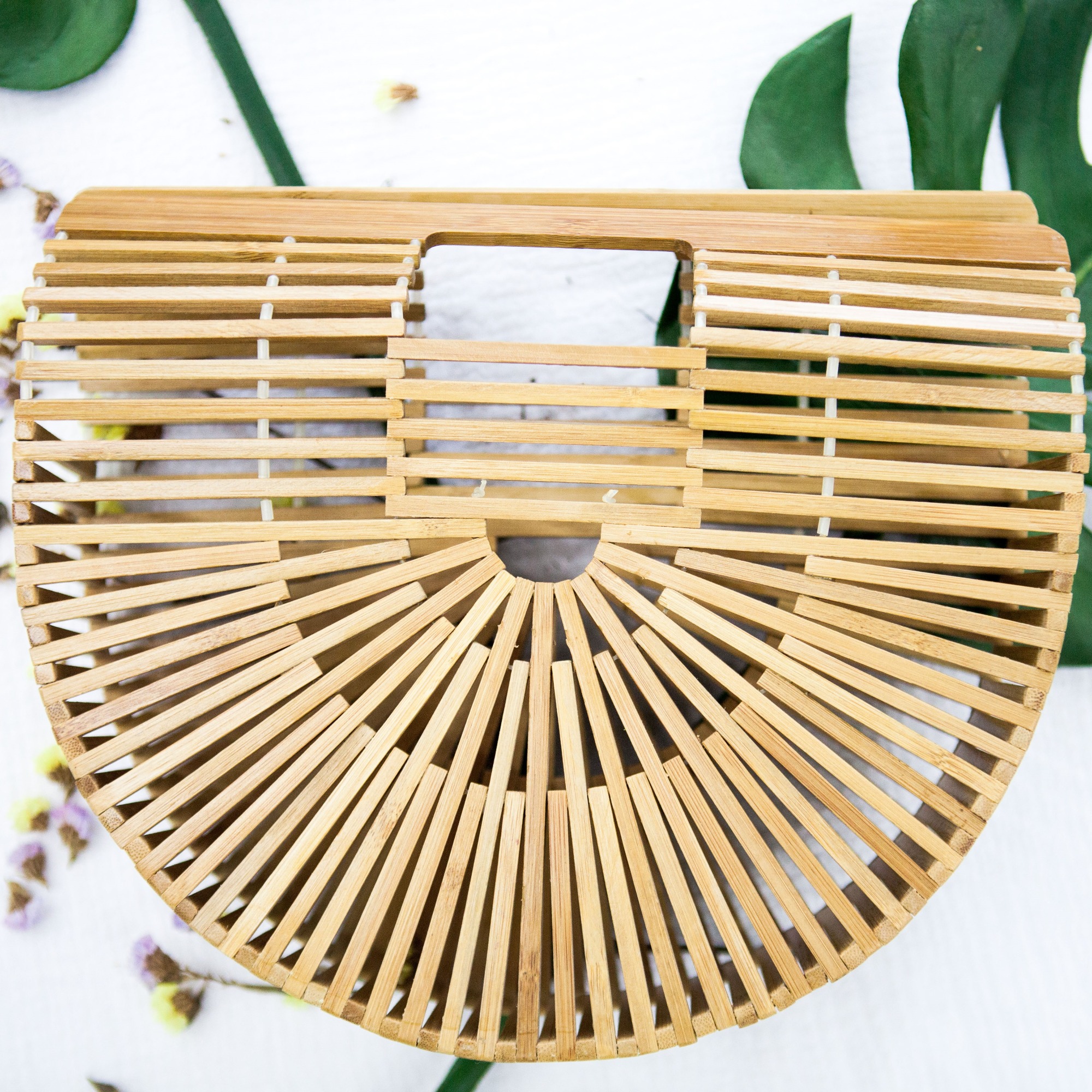 【MATERIAL】100% Eco-Friendly Bamboo, raw material come from “Home of Bamboo” in China, all bamboo used for our bamboo handbag are strictly tested by carbonization treatment for mould proof, anticorrosion and insect prevention.
